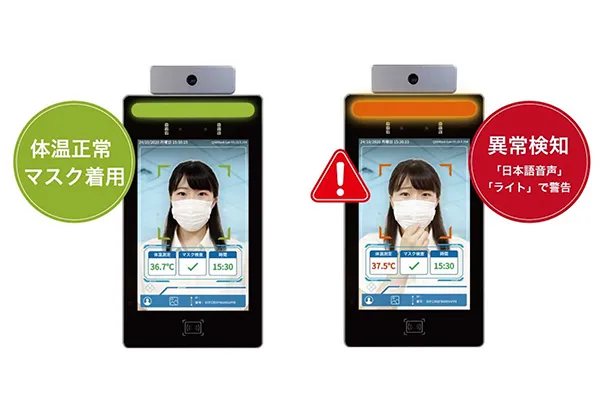AI(人工知能)顔認証機能搭載の、自動検温モニタを設置しています。0.5秒程で素早く測定することが出来、高い測定精度があります。
